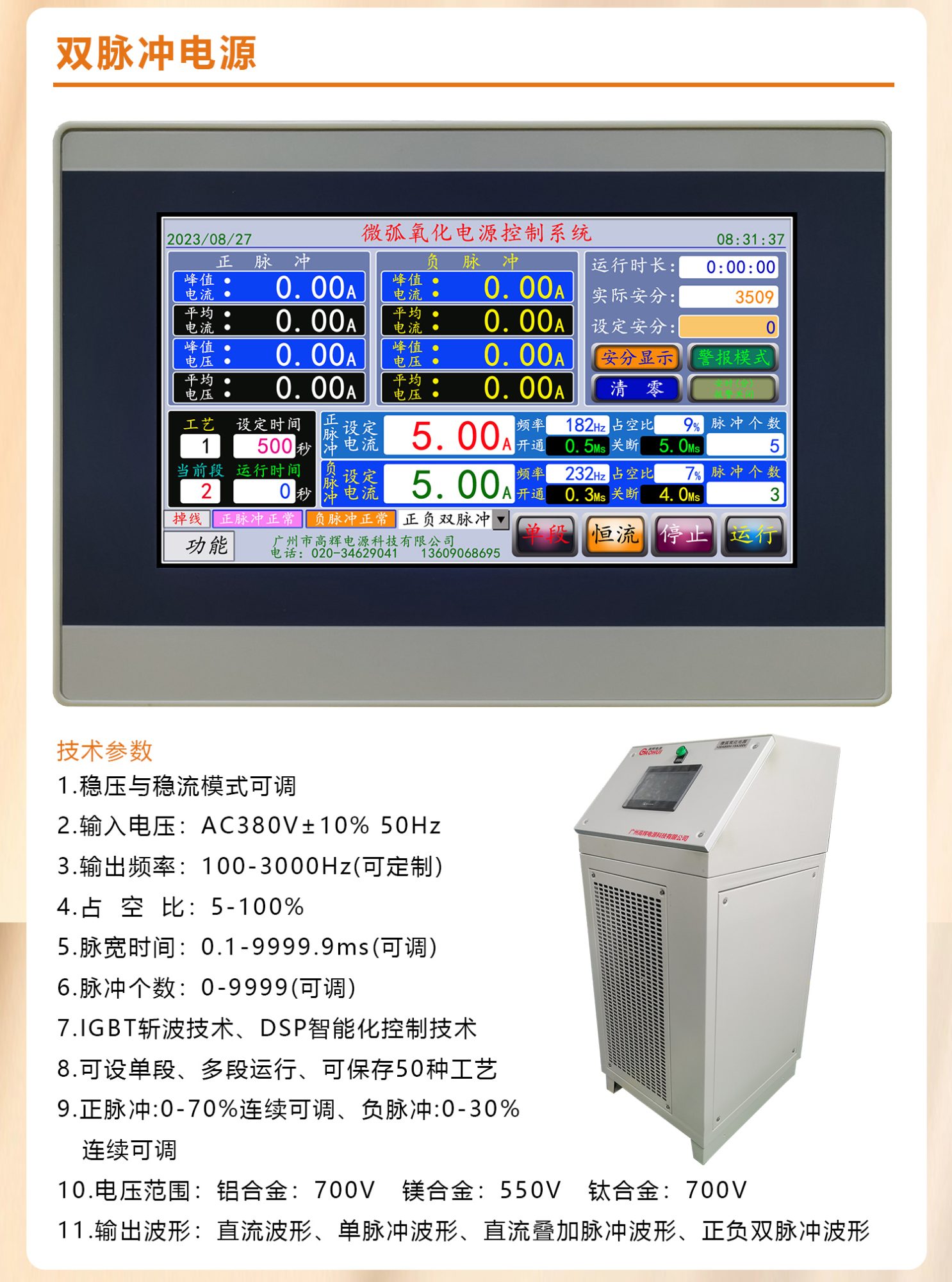 10A750V風(fēng)冷微弧氧化電源